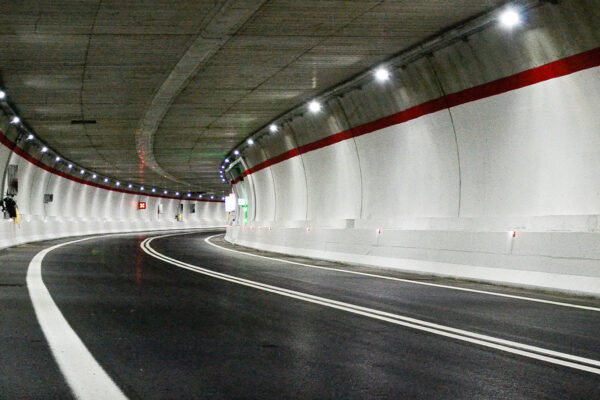 Più sicurezza ed efficienza energetica con i proiettori LED di AEC Illuminazione all’interno della galleria stradale Valnerina, una galleria ad unico fornice bidirezionale di 3.694 metri.