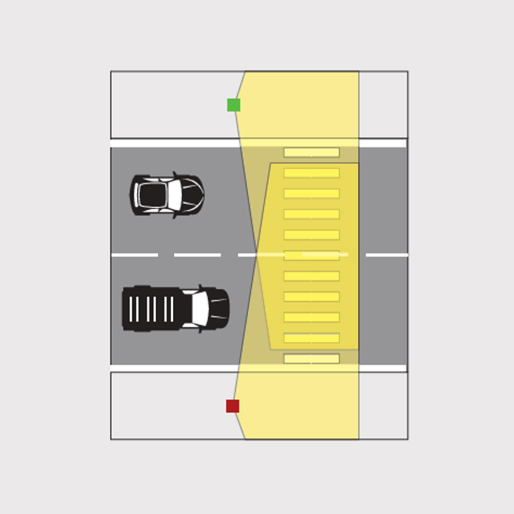 Ottiche OP per evidenziare le zone di attraversamento e garantire il corretto illuminamento verticale richiesto dalla norma UNI/TS 11726.