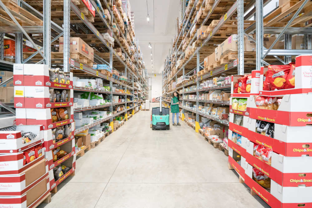 Il Cash & Carry di Bussolini Distribuzione è stato illuminato con i proiettori LED per ingrosso alimentare di AEC Illuminazione. In questo ampio spazio, utilizzato per la vendita di generi alimentari a clienti muniti di P.IVA, la merce è esposta e ordinata su alte scaffalature in metallo e suddivise per categorie merceologiche. Garantire un’illuminazione nitida e confortevole a clienti e operatori dell’ingrosso è stato uno dei principali obiettivi del progetto, distribuendo il fascio luminoso in tutta l’area e riducendo al tempo stesso, i costi energetici e di manutenzione dell’impianto.
